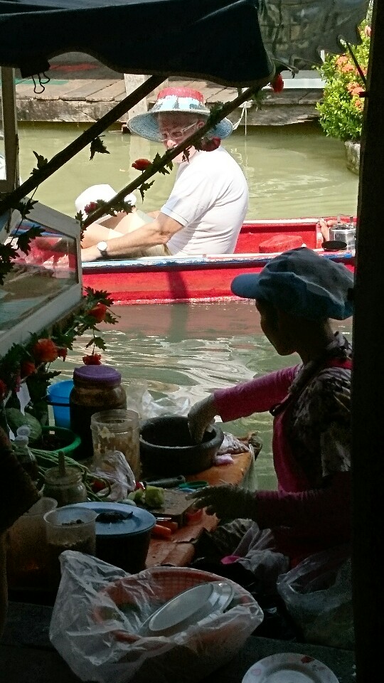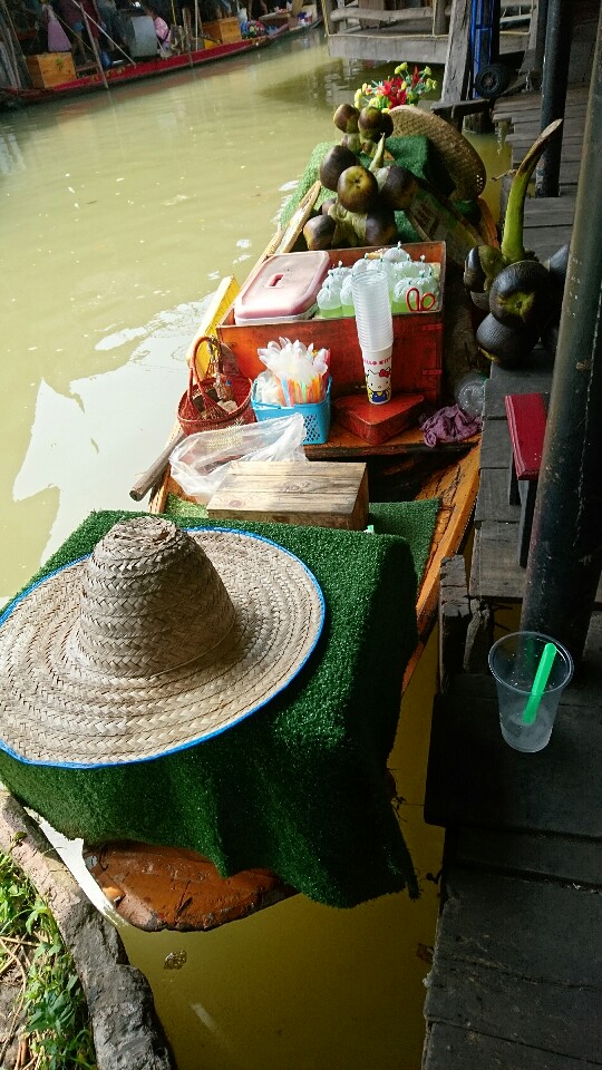 chieko-mobile 2018年1月28日 午前中は、ソンテウという乗り合いツゥクツゥクで、水上マーケットのようになってるところに行きました。 あひるの 下顎を焼いたのとか(?)たこ焼きにたこが1ぴきずつ くっついて(!)るのとかまだまだ 不思議な食べ物がいっぱいでした。虫系のものは写しませんが‼ 絵を描いていたり はたを織っていたりテーマパークのようです。午後には10分おきに出てるバンコク行きバスで2時間半。 108バーツで帰りました.。 ← パタヤの朝 最後にカレー →