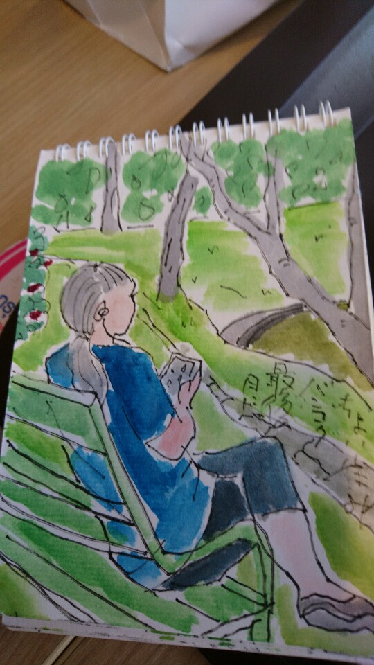 chieko-mobile 2018年1月29日 何しろ 暑くて‼ せいぜい公園の日陰外で。外で描いてなんかいられません‼ BTSに乗るのは慣れたけど 改札のところに必ず 警察?みたいな人がいるので、わかっていても、必ず「プロンポン駅はこの線?」と確かめます。「イエース‼」とニッコリしてくれるの。 と 言ったら彼は「うん、それはあってるよ」とほめて?くれました。が「ただ、しゃべりたいだけなんでしょ‼」と娘が一言。 う~ん。ズバリ、あってる❗ ← 日本を思う 続き フードコート →