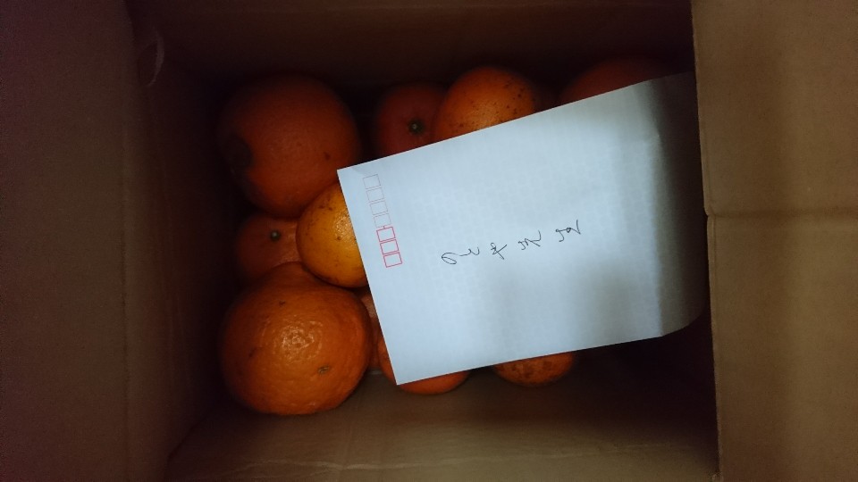 朝から雪がふりだした日、奄美大島の加計呂麻島担当のベテランガイドさんからたんかんが届きました!ビックリ!