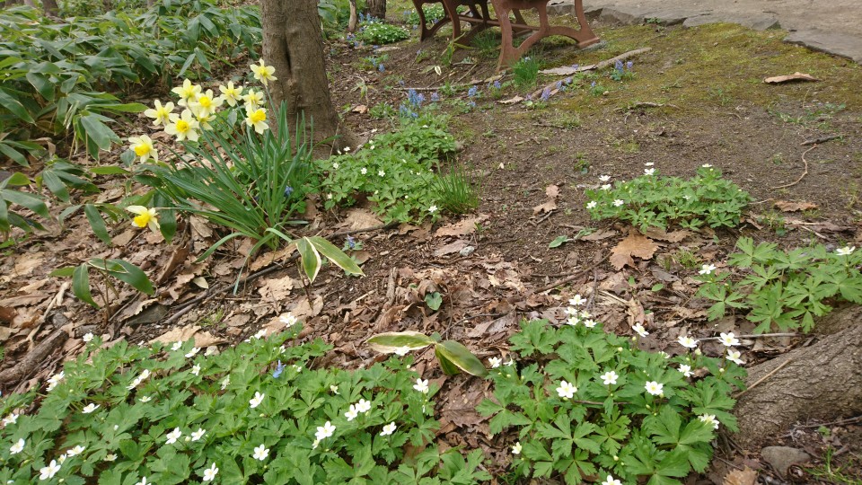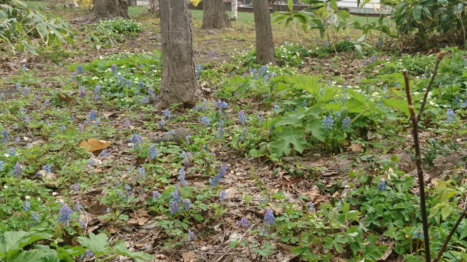 chieko-mobile 2019年5月1日 途中 西野緑道に入ると白樺並木があります。只今葉っぱはこんな感じです。 根本には 一輪草やエゾエンゴサクなどが咲いています。 スミレが見つけられなかった! 花たちも年々少なくなっているような…… ← 発寒川と桜 散歩して →
