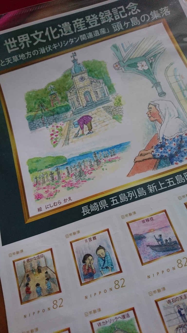 chieko-mobile 2019年5月15日 中にあんが入ったかんころもち(さつまいものだんご)とか 五島列島の美味しきものと 思い出の頭が島の切手が送られてきました!しかもそれは絵なんです。世界遺産登録記念で作られた切手でした。ビックリ‼️ すごいですね~ ← 一年生 三時まで →