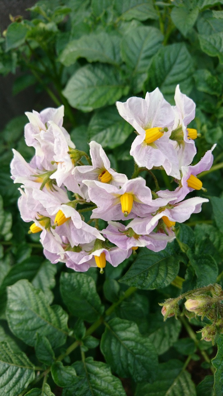 chieko-mobile 2019年6月11日 5月の教室で「今、じゃがいもを植えると7月15日に食べられるよ」と牧場の奥さんが教えてくれたので、 さっそく家に帰って冷蔵庫で芽が出始めていたのを2つに切って埋めました。 なので二株が 花が咲いています。 ちょいと赤い口紅をさした白い芍薬も咲き始めました。古くからある株です。 南フランスで魅了されて購入した赤いばらも待ってましたとばかりに咲きだしました。 ← ぽぶらの綿毛 千島桜 →