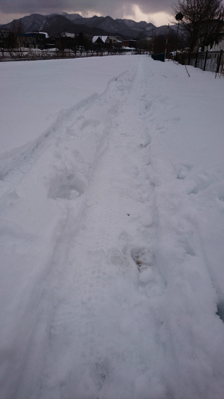 横には歩くスキーのあとがあります。