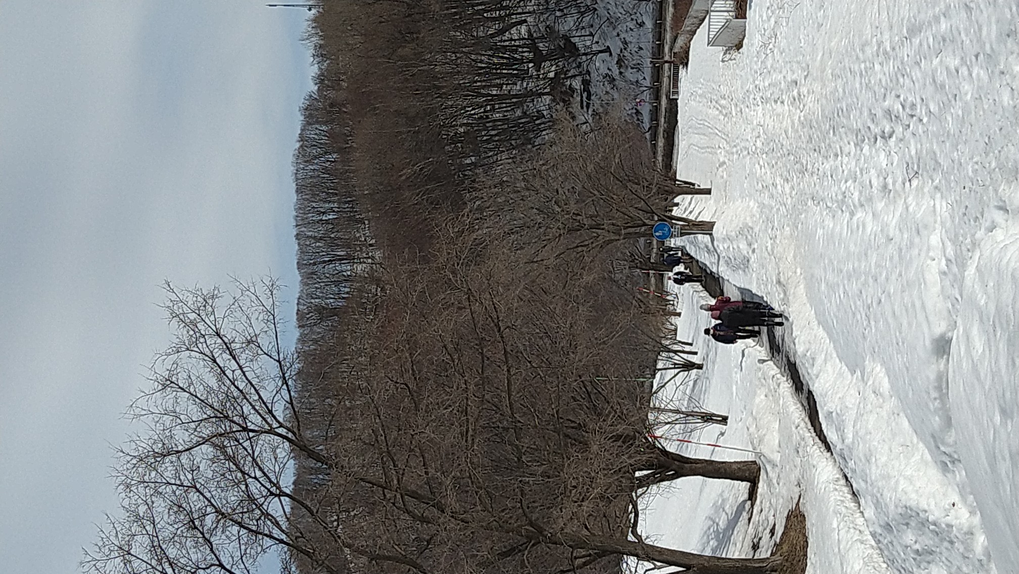 入口から除雪されていて散歩を楽しむたくさんの人達。