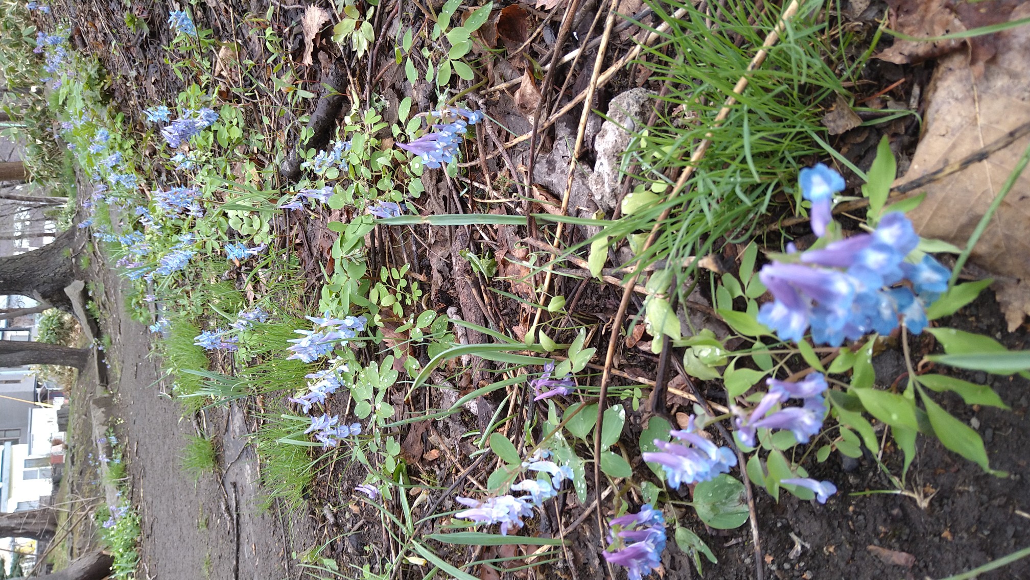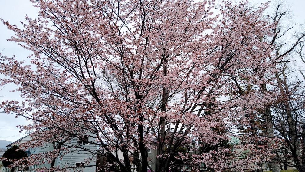 chieko-mobile 2021年4月25日 近くの白樺並木の下の「エゾエンゴサク」まできたら、雨がふってきました! 急いで引き返しました。 「桜」も「北こぶし」も、雨の中でもきれいです。 東屋で休むも良しですが黒く重い雲が覆ってきて、晴れそうもない! 冷たい雨で寒いけど、走れないぜー!(笑) ← おがってる! 雪が! →