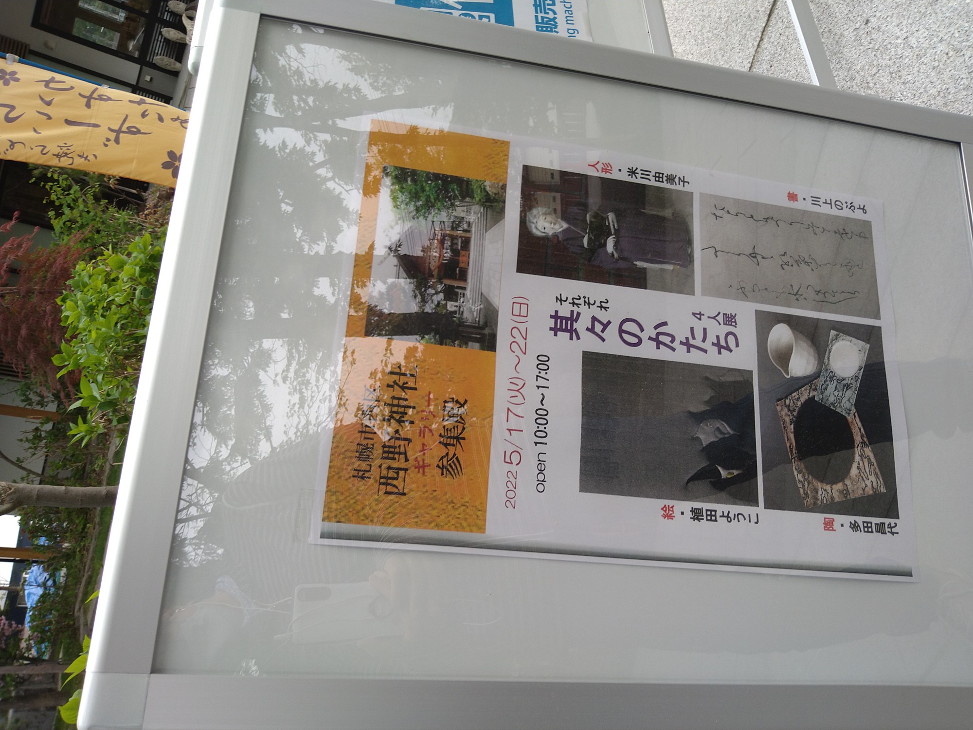 chieko-mobile 2022年5月19日 散歩道途中に西野神社の作品展に行ってきました。 ここは行くたびに境内が新しいものがあって、今回も新しく「参集殿」という休憩所の会場で良い雰囲気でした。 いつもの手作り作品展のような賑やかな感じではなく、ちょっと様変わりしていました(それとは違うのかなー) 気に入ったカップを買ってしまったので、スーパーでは牛乳だけ買って帰りました(笑) これで30年は使っているマグカップを処分します! ← おしどり 猫のひたい →
