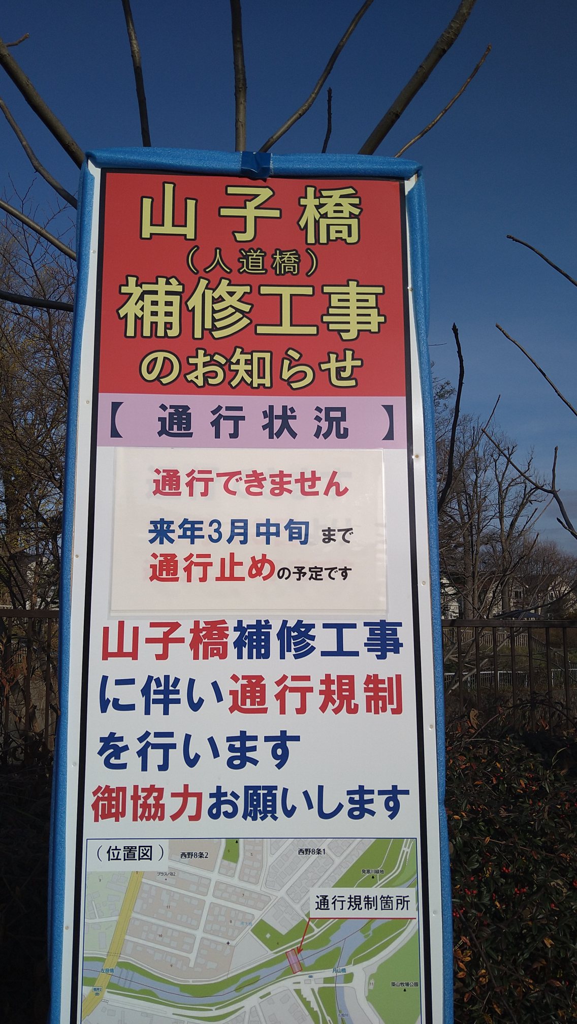 chieko-mobile 2022年11月23日 木造の山っ子橋が工事中になりました。 木が朽ちてて、傷んでいました。 3月まで通れないので、おそらく当分今日は最後でーす! やっぱり、今日の帰りは通行止めでしたー! ← 大通り美術館 はさみ漬け、 →