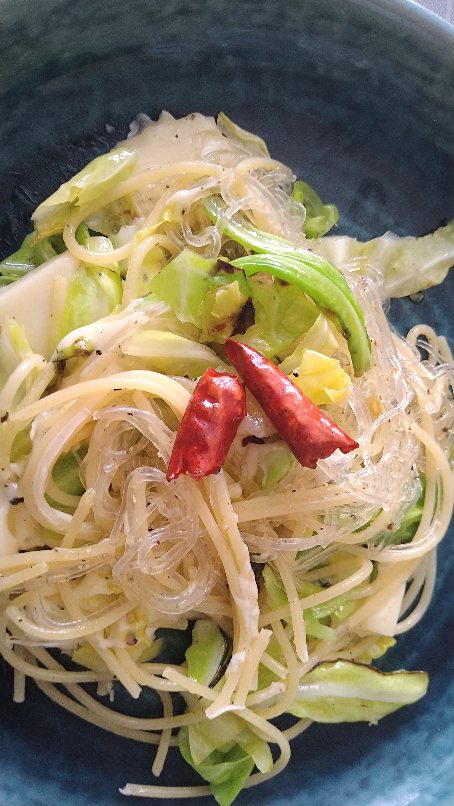 小林牧場のクラフトチーズがそろそろ終わるので使ってキャベツと春雨入りペペロンチーノと、秋に頂いてつけておいた山葡萄酒が、おいしくなっていました。