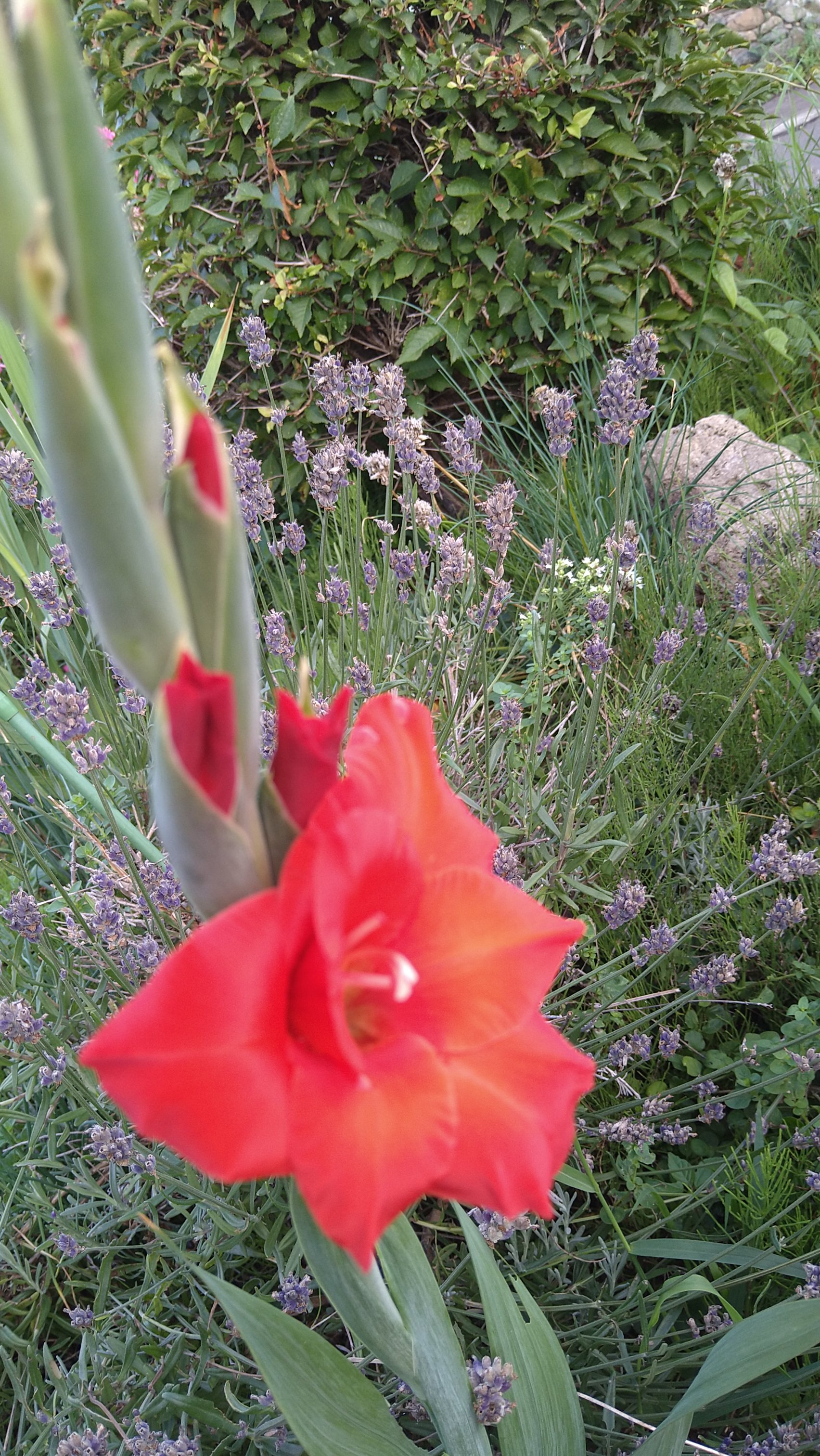 chieko-mobile 2023年8月3日 春に、友人が 間違って注文して届いた、というグラジオラスの球根をたくさんいただきました。 草だらけなのにりっぱ! 昔、田舎の家にもあったなつかしいグラジオラスが、見事に咲きました! ← ランチ会 大当たり! →