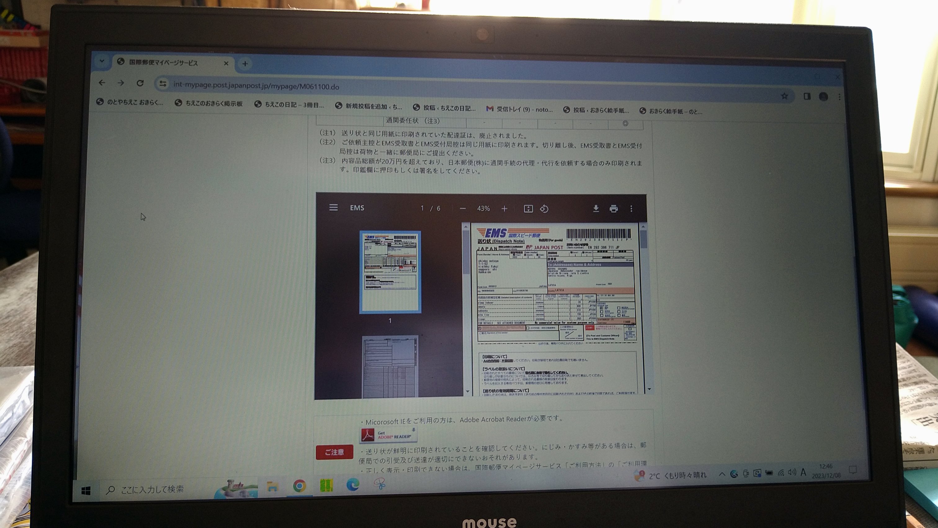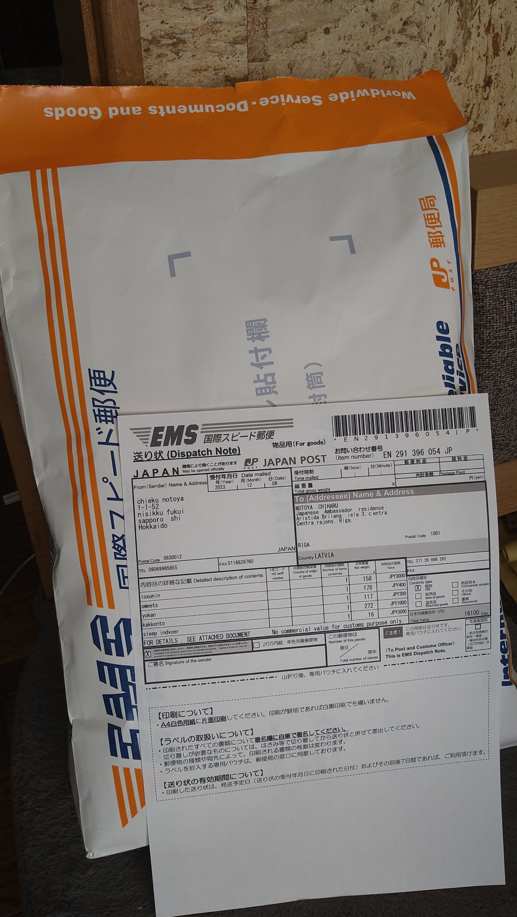 昨夜からあれこれ送るものを揃え、英語での書き方をメモし、重さを計り2キロまでにして準備をしました。