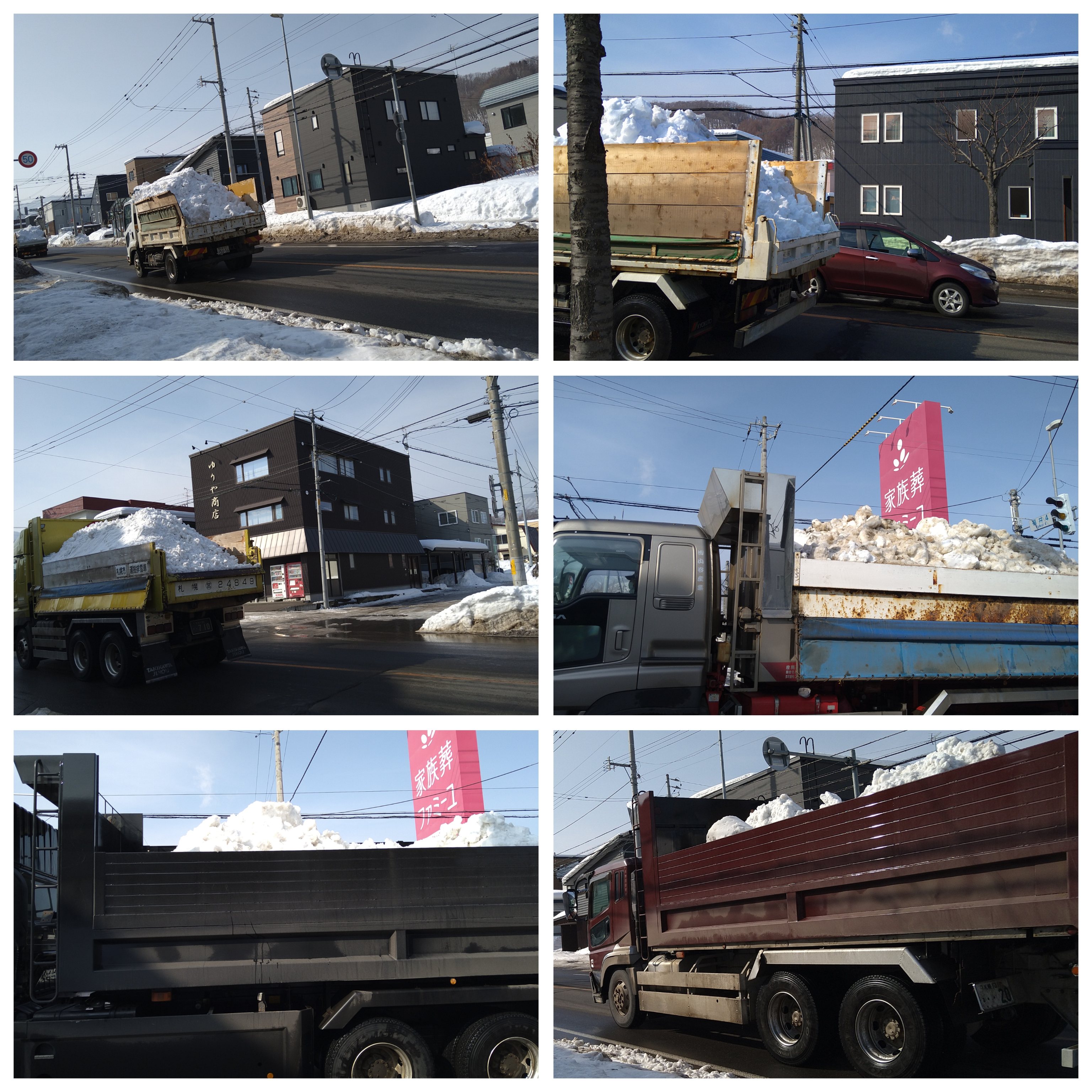 奥に排雪場があるので雪を運ぶダンプがいっぱい通ります。