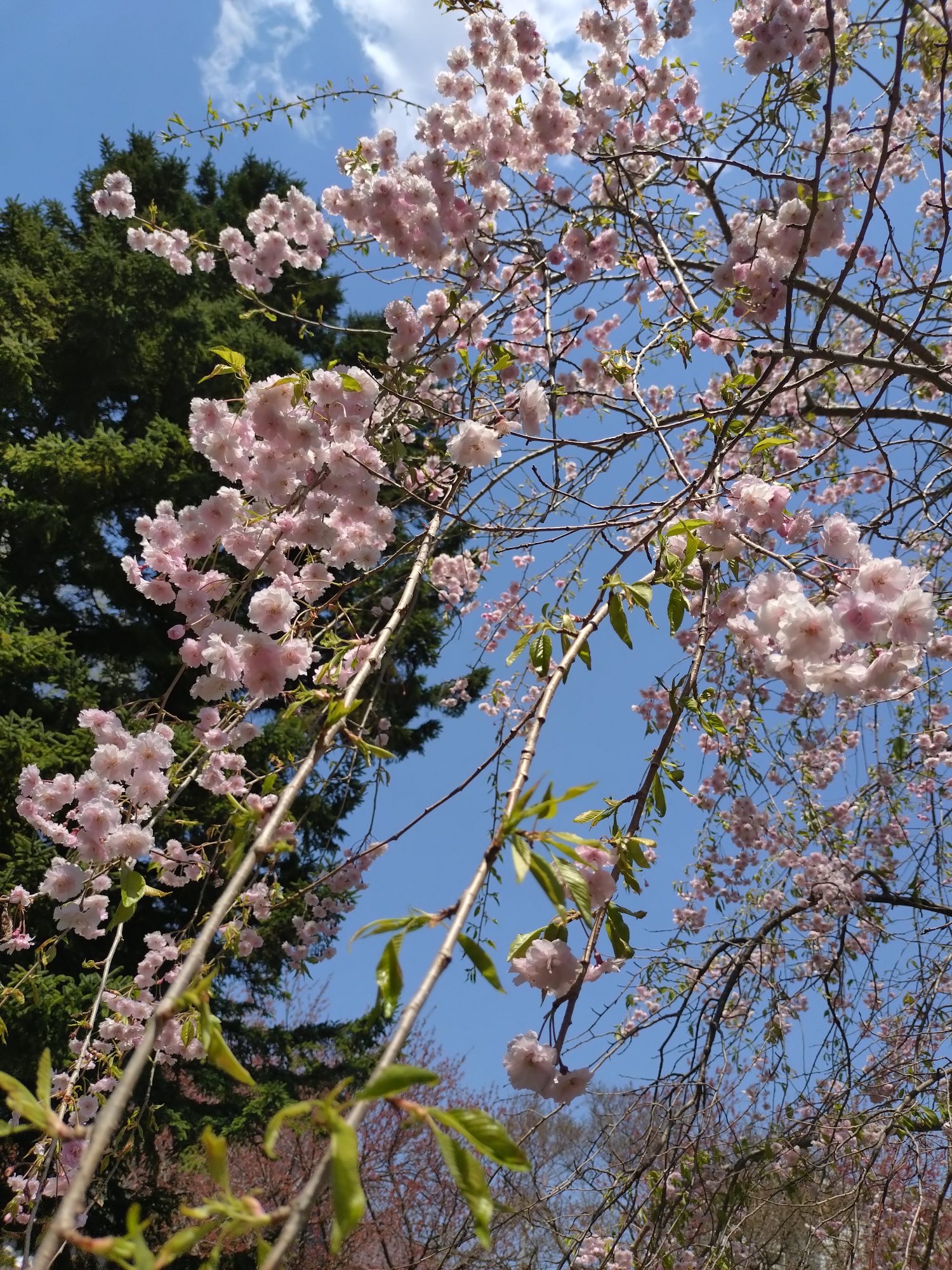 chieko-mobile 2024年5月3日 今日満開なのは、かの公園にある一本の枝垂れ桜です。 山桜も、八重桜も濃いピンクの花ですが、なんともうすいピンクが 愛らしく品が良くはなやかです。 ← 八重桜 白い花 →