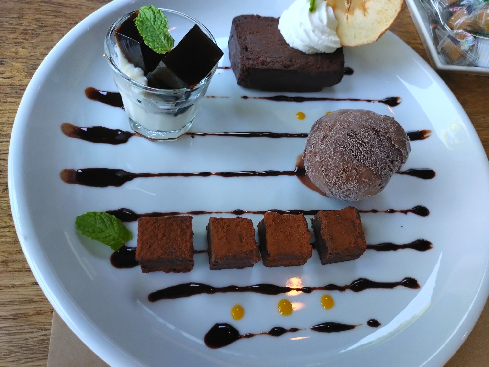 共通の友人と4人で遠くにヨットが見える海のカフェで最近食べた覚えのないスイーツを食べました。(笑)