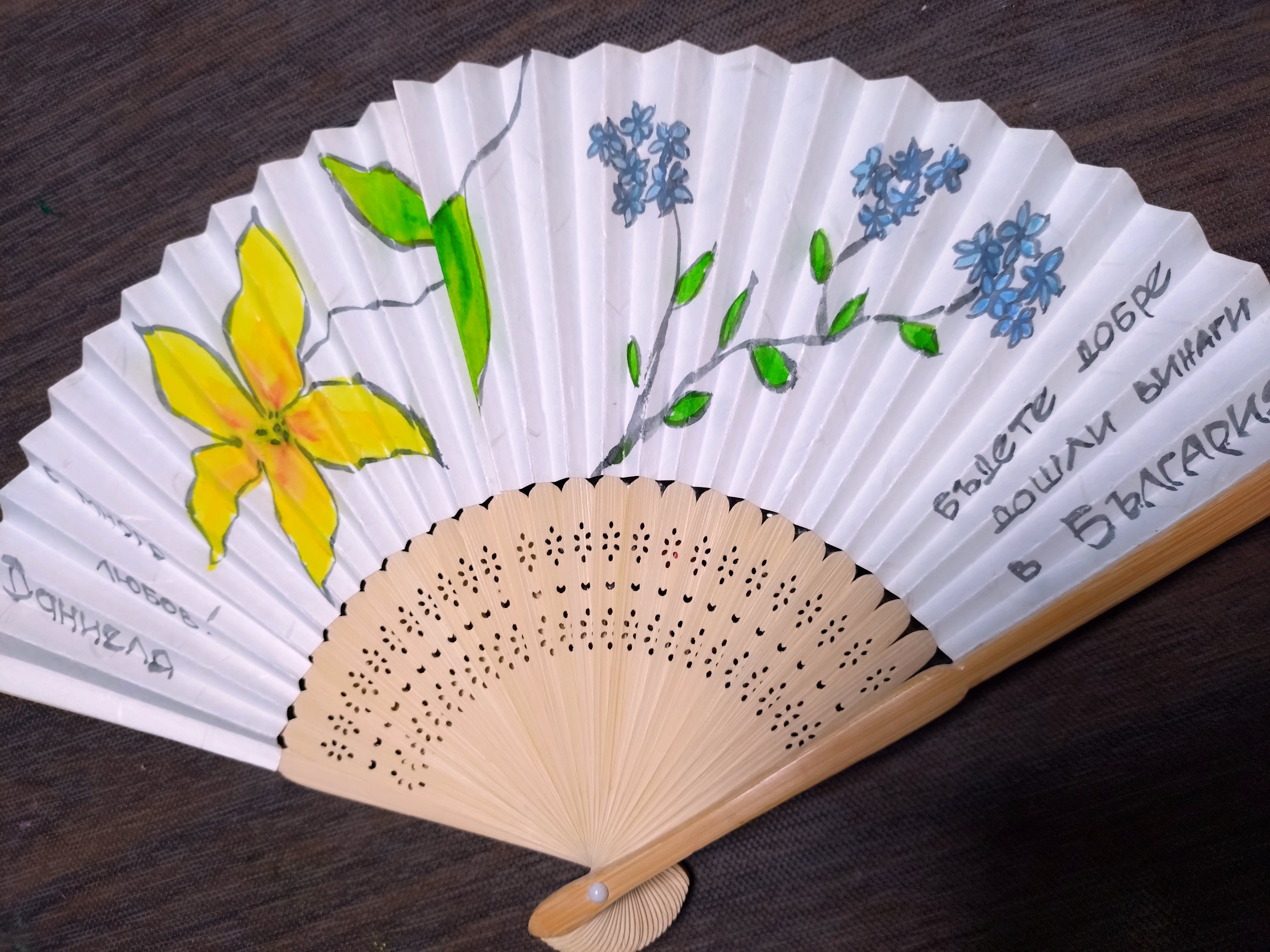 2010年.絵手紙ツアーでブルガリアに行った時、絵の具と筆をたくさん持って絵手紙教室をしました。