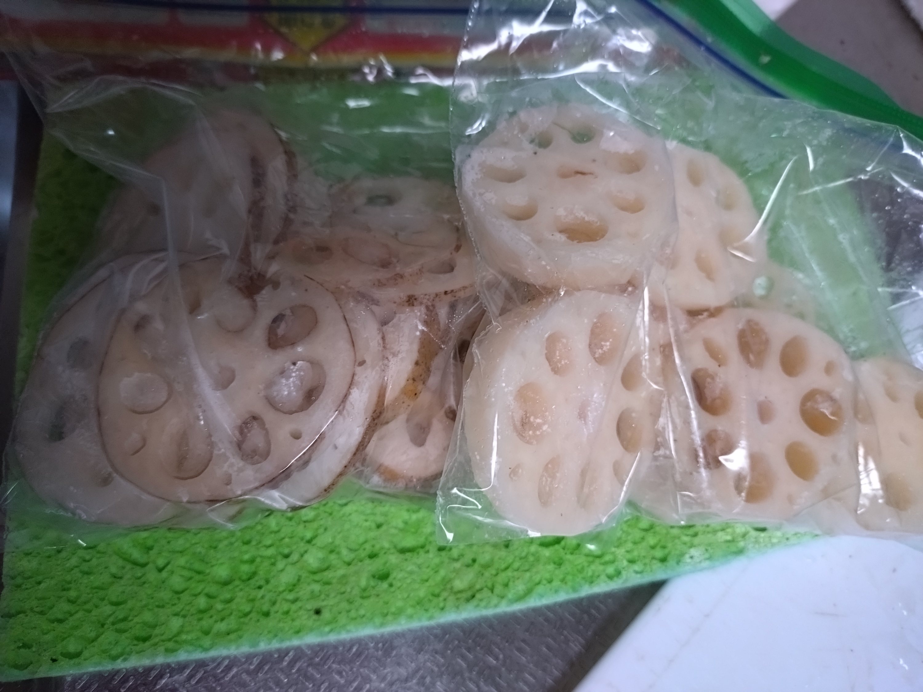 酢レンコンにするのと2つに分けて冷凍しました!