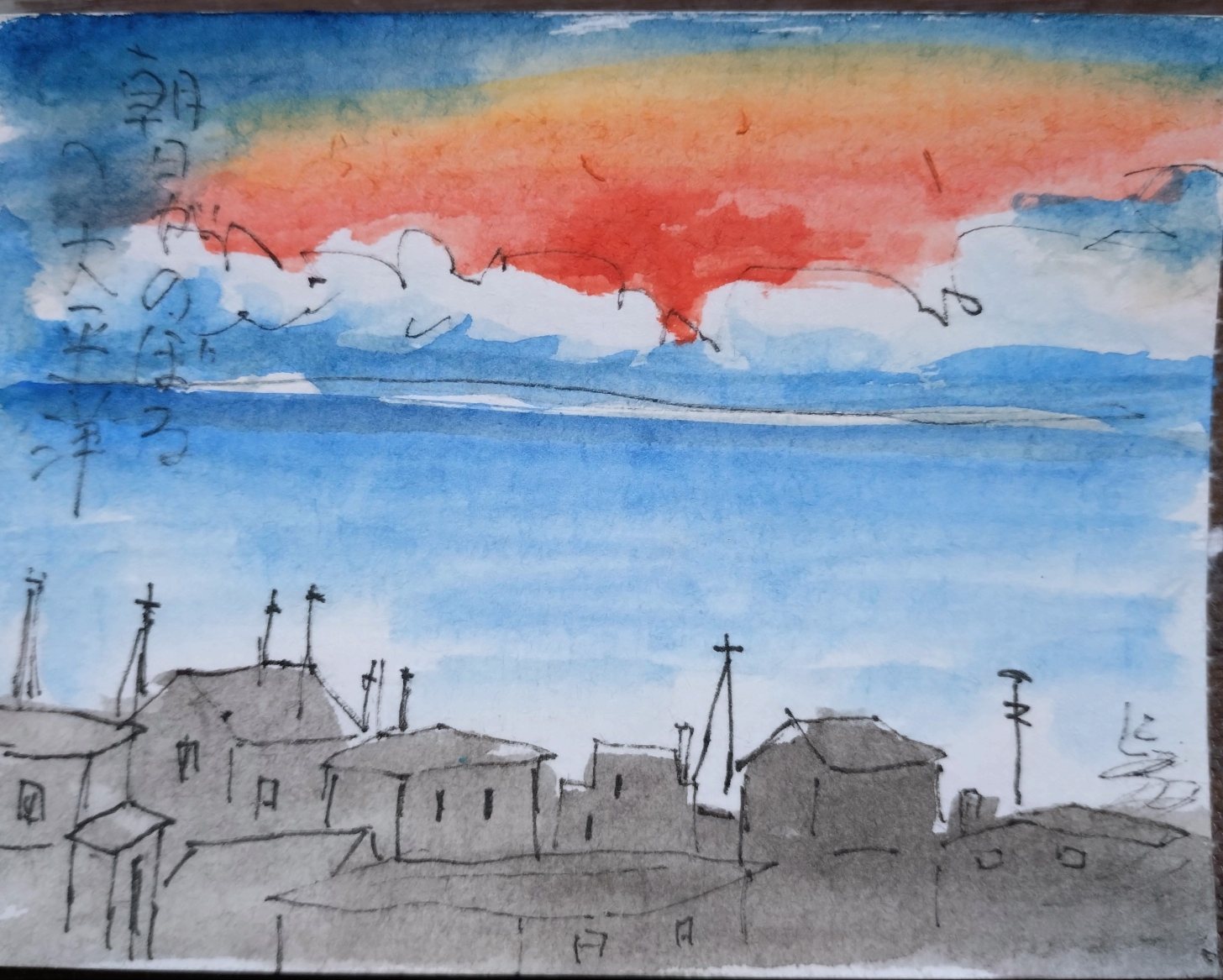 厚い雲に阻まれていた朝陽が、刻々と形と色を変えて昇ってきました。