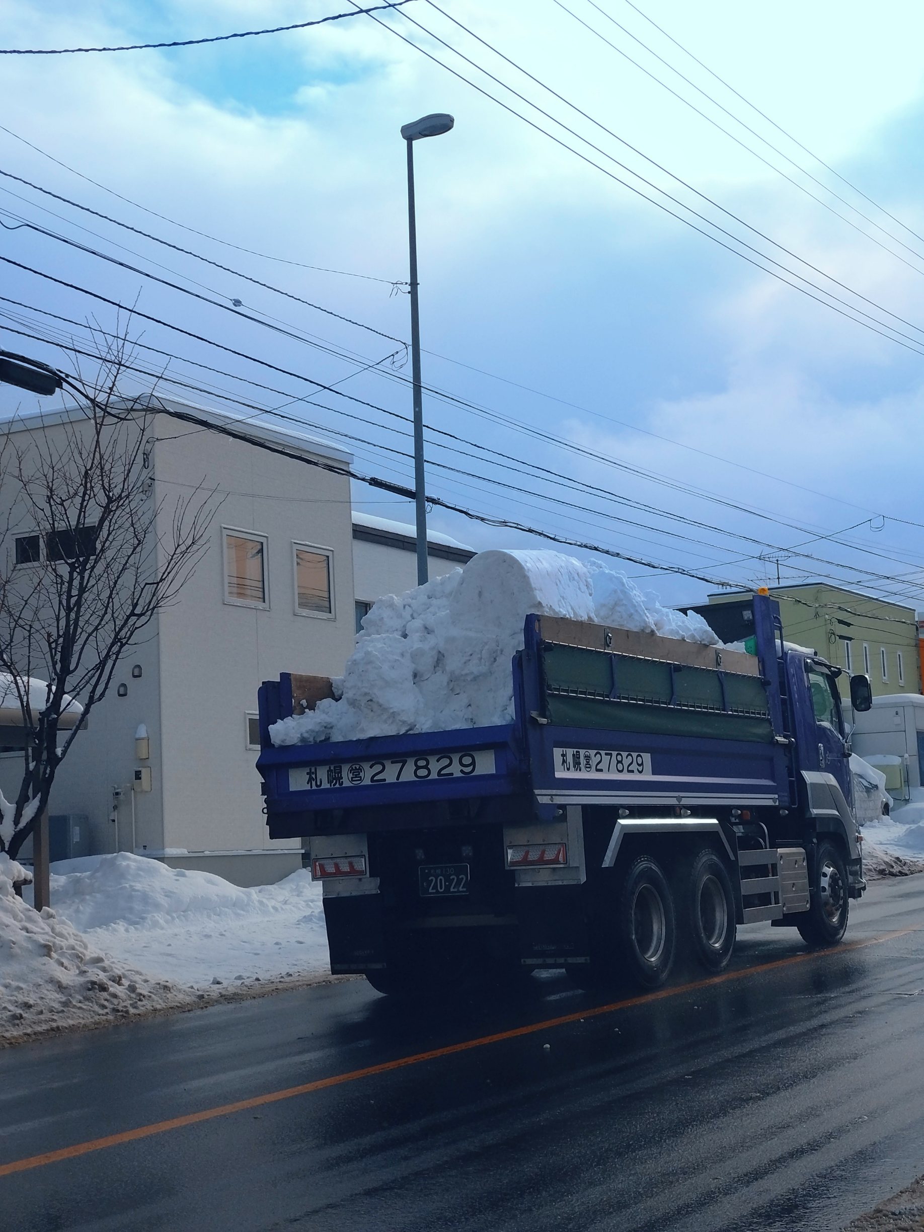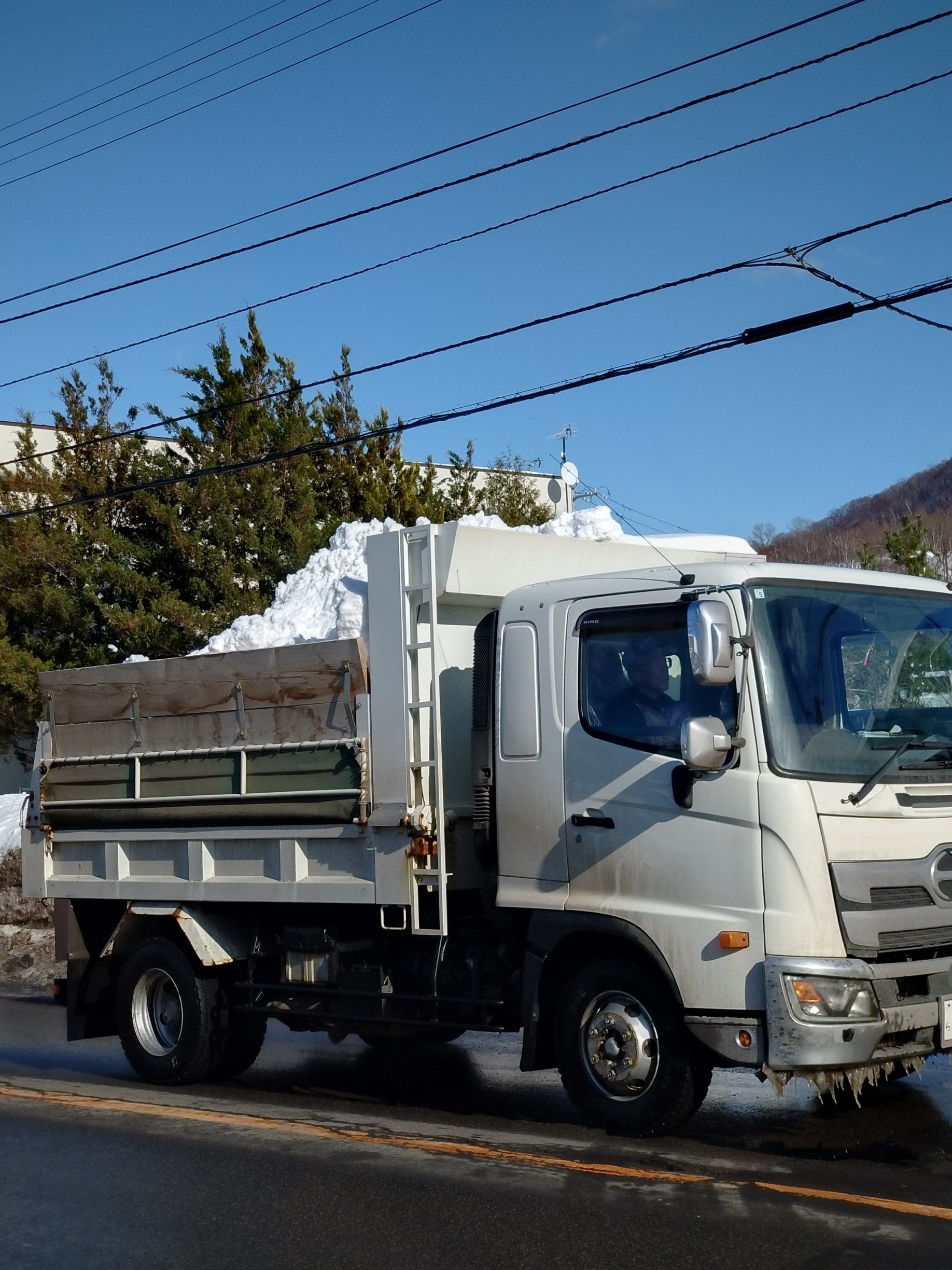 chieko-mobile 2025年3月1日 バス通りの終点の山は、雪捨て場所になっています。 大型車両が雪を運んで次々と連なります。 大変な仕事ですが、道は大渋滞でバスも時間通りは動けません。 春のこの時期は車に乗るのもバスに乗るのも大変です。 もう一度位は嵐もあるでしょうけど、この渋滞を見ると、「あ~冬を乗り越えたなー」と思います(笑) ← 切り干し皮大根 中央市場で →