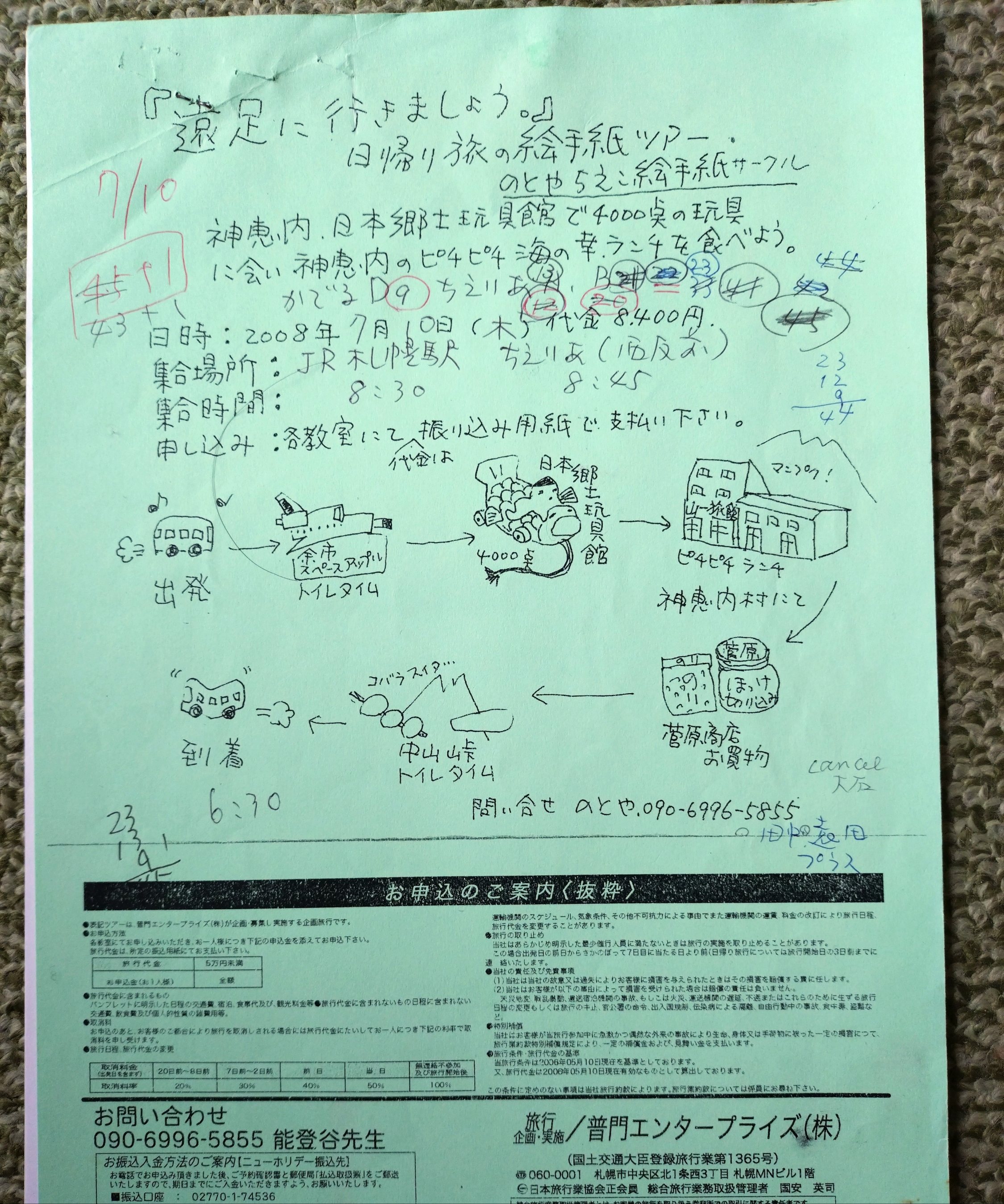 2008年に初めて作った日帰りバスの旅の私が描いたパンフレットです。