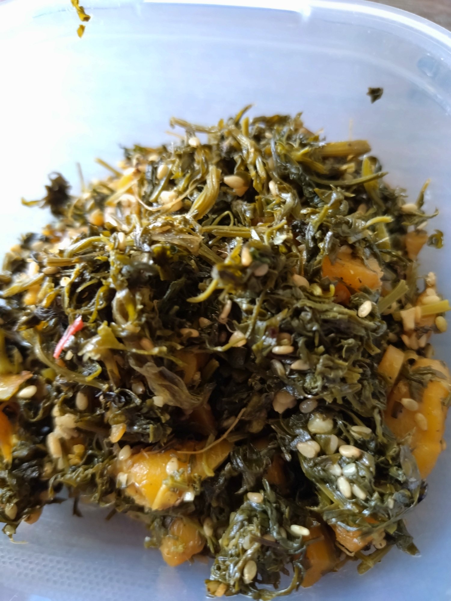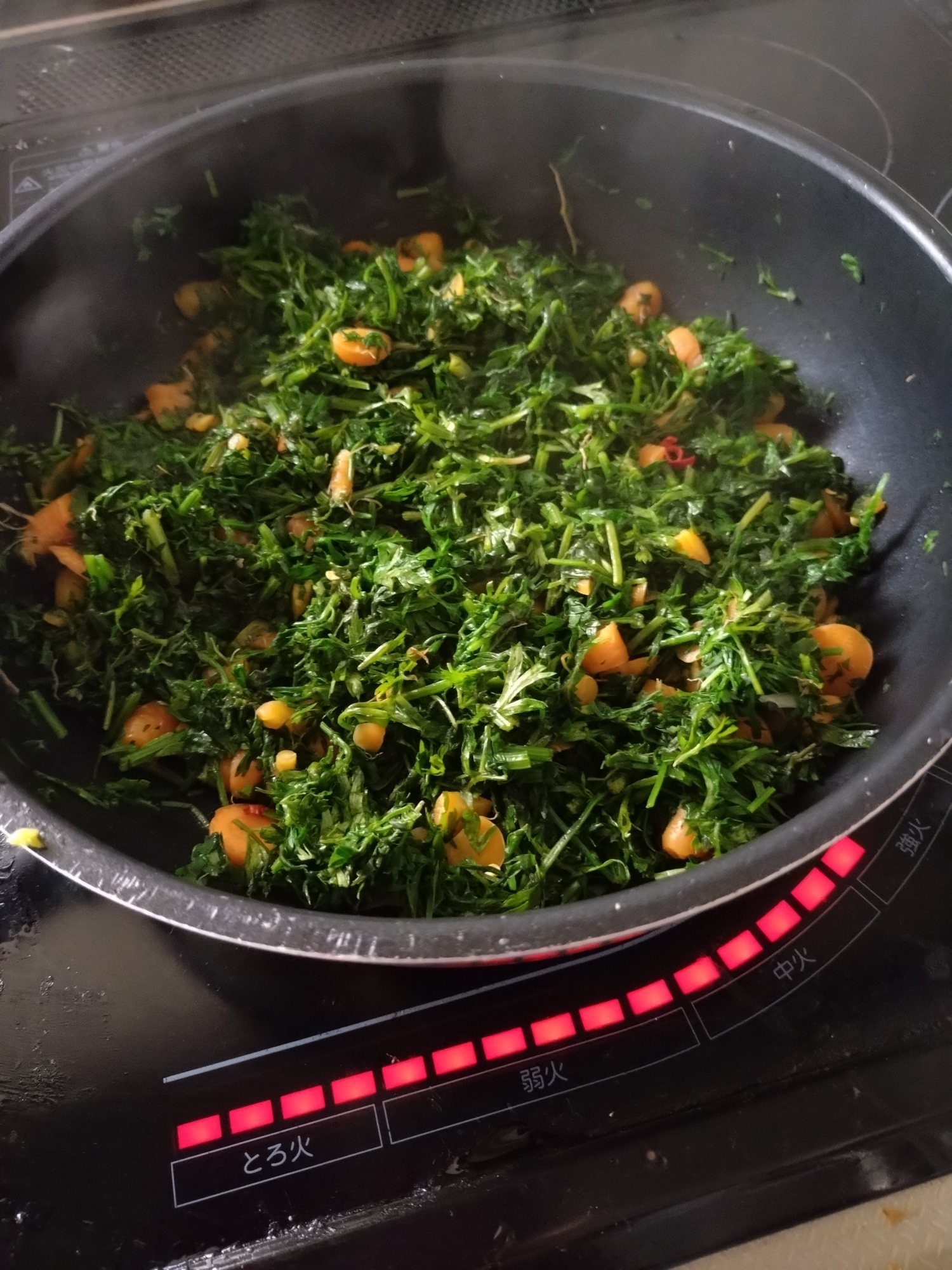 柔らかいところだけ刻んでふりかけのイメージで、スリランカ土産の魚のだしみたいなのを入れてみたらとってもおいしい!大量なので小分けにして冷凍保存しました。