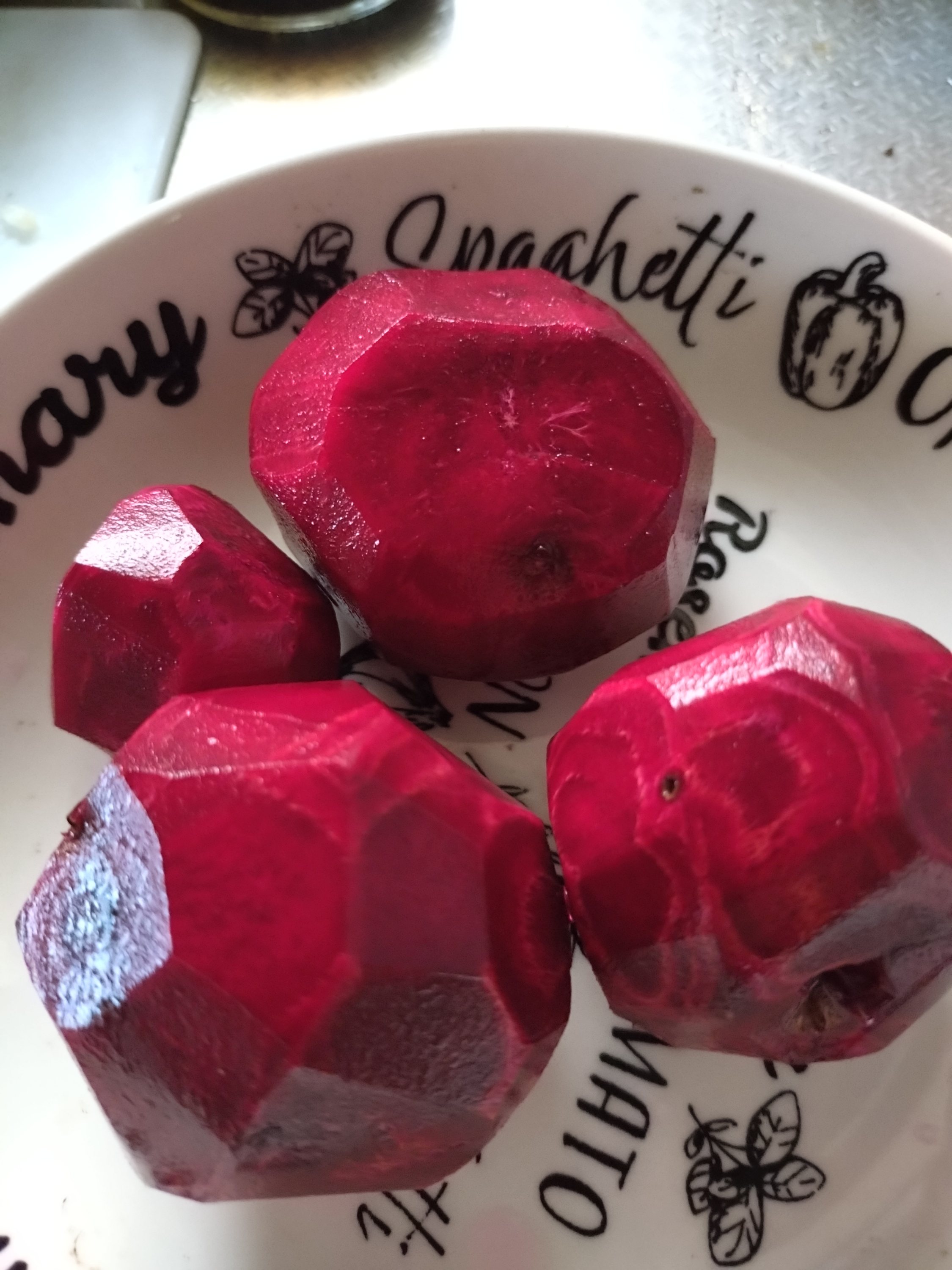chieko-mobile 2025年7月10日 穴を掘って植えた野菜達です。 場所もないので間引きの人参は耕していないカッチカチの土に植えたので人参は真っ直ぐ伸びれないでいます(笑) なので「間引きの間引きの人参」は、みじん切りより大きいので色々と使います!(笑) 飲む輸血、と言われるビーツもいっぺんに収穫するのは大変そうなので、少しずつ皮をむいたら刻んで、チンして食べることにしました。 茎はざっと切って、おいしい酢でマリネにして見ました。 なかなか美味しい! 少しずつこれで冷凍保存もしていきます ← 涼しい朝方 バックムーン →