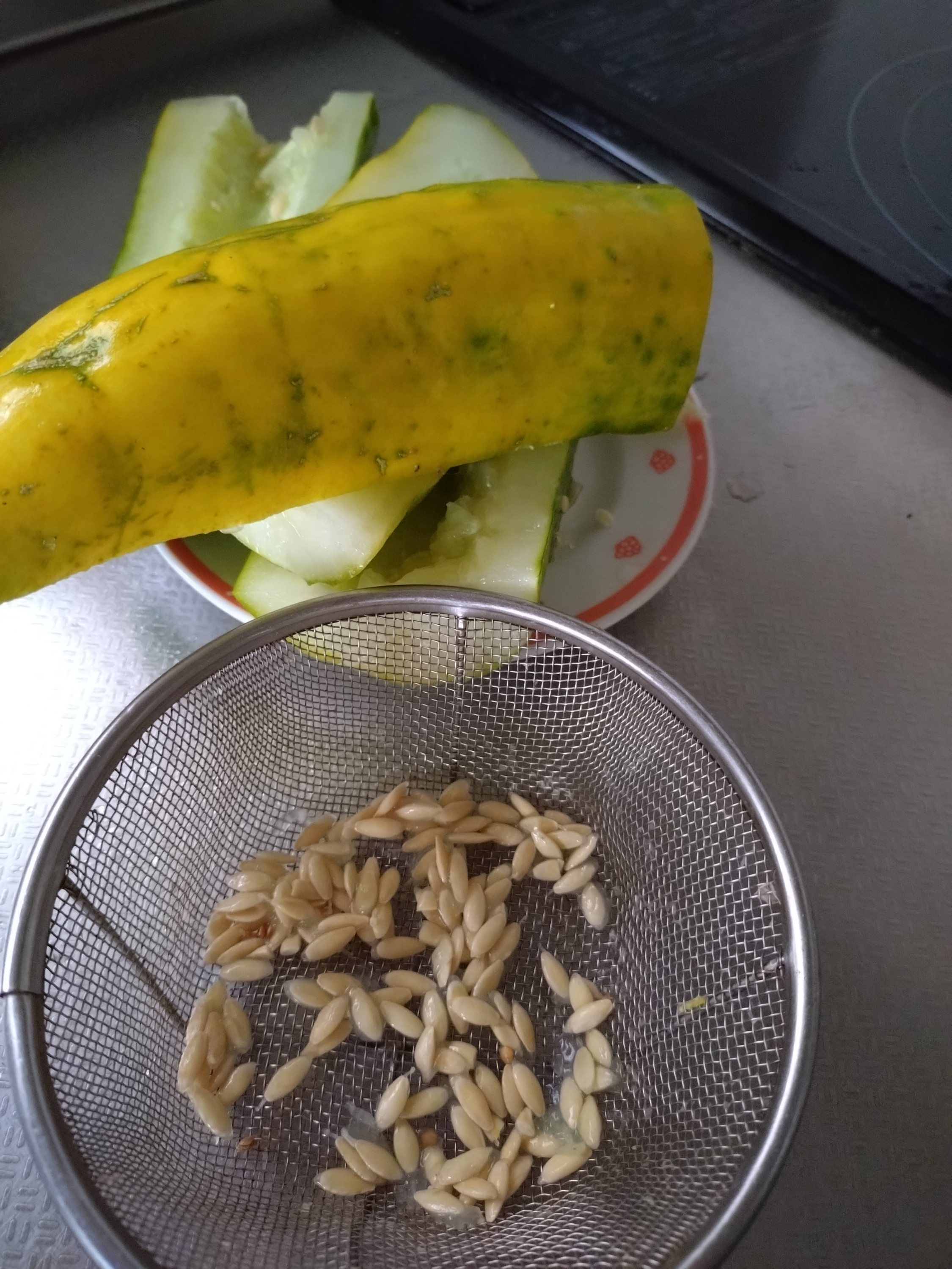 chieko-mobile 2025年9月14日 種を取ろうと思い、黄色になるまで大きくしておきました。 この大きな実からこれだけの種です。 洗って浮いた種は捨てて、しっかりしたのだけ残して干しました。 一本だけ苗を育てるために 何やってるんだろー(笑) 大人の遊びです(笑) ← さんまご飯 昨夜のあらし →