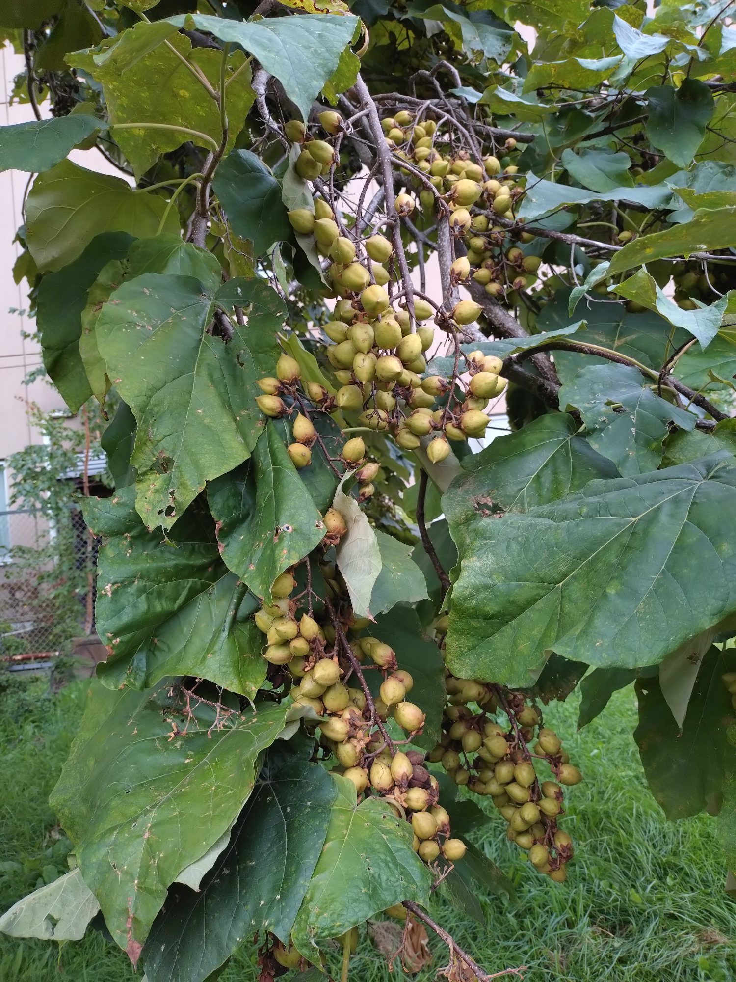 桐の木の実が重そうです。