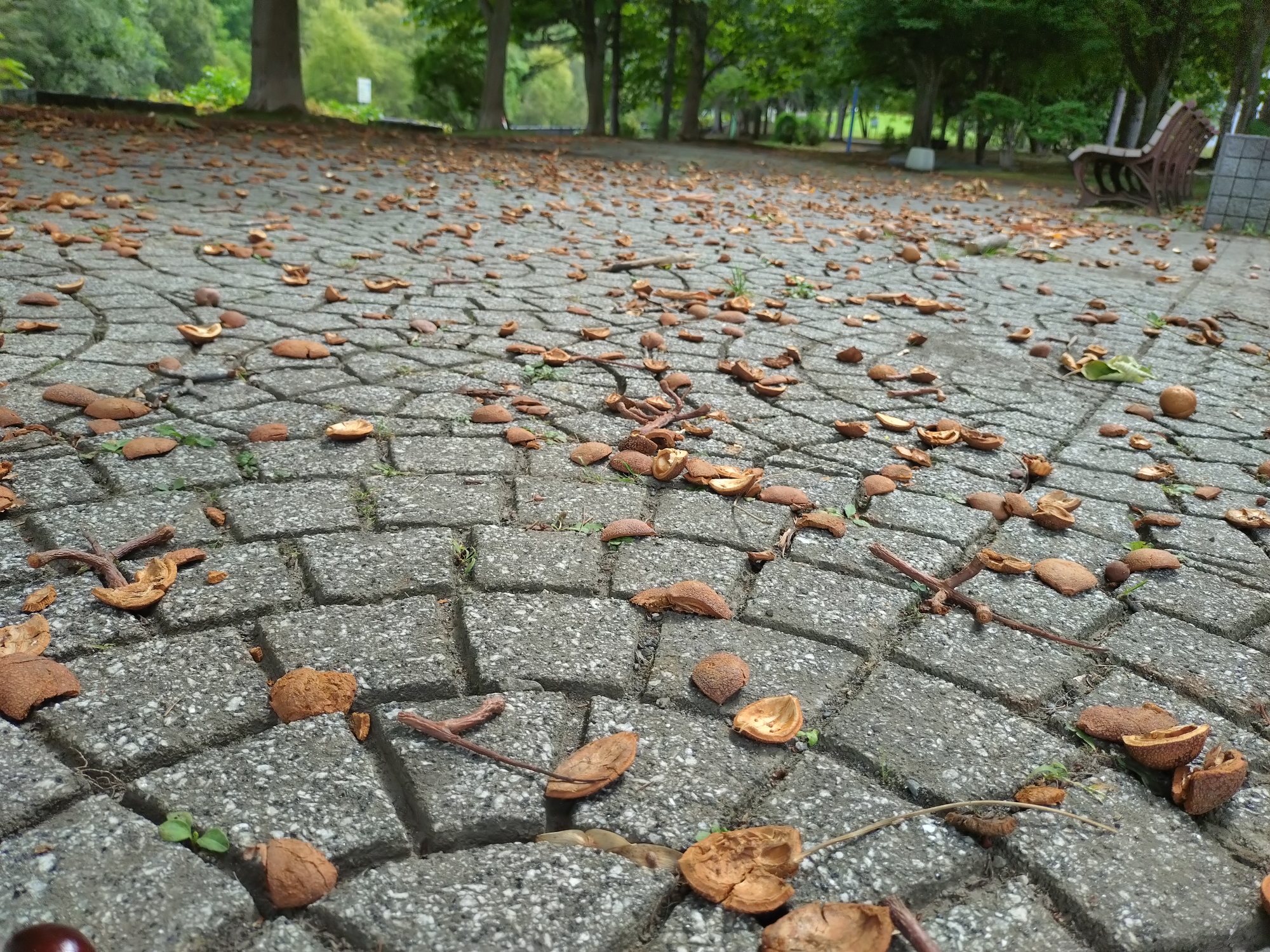 栃の実の弾けた実を持っていったのは人か何かの動物か(笑)キツネの糞が落ちていたけど、食べるのかなー