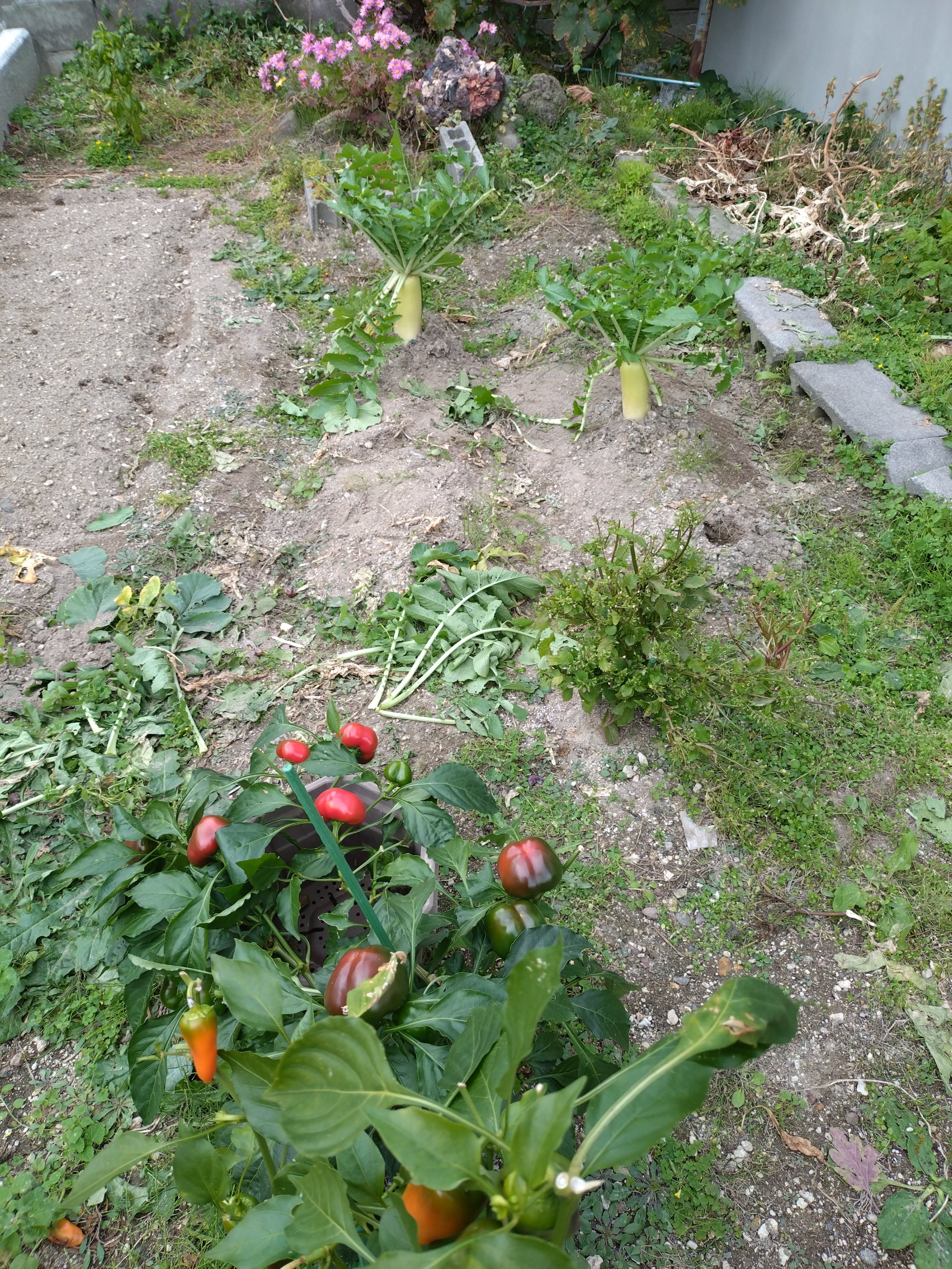 chieko-mobile 2025年10月16日 予約していたタイヤ交換も終わりました。 これでいつ雪が降っても大丈夫です。 庭もすっかりさみしいくなってスタンバイオーケーです。 カラーパプリカだけが、赤い色がつくのを待ちます! がんばれー(笑) ← 大根の始末 ニラ →