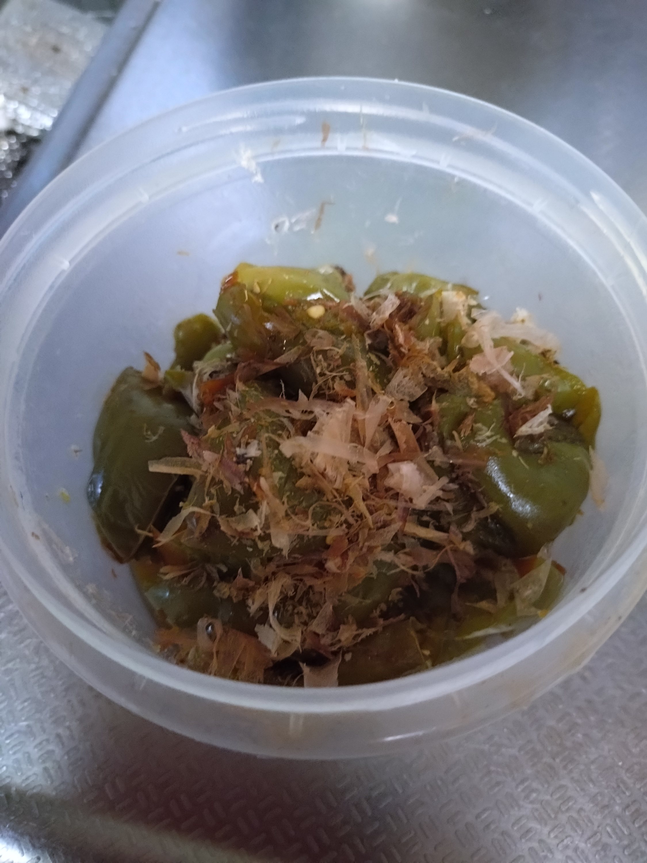 chieko-mobile 2025年10月22日 唐辛子のはっぱのつくだは 畑じまいのお楽しみです。 細い青南蛮を少し入れて、 大好きなつくだ煮です。 ピーマン類の緑の物は種をとって、醤油、砂糖かつお節等を入れたらピッチリ蓋をして弱火で40分くらい火にかけておきました。 水を一滴も加えずに美味しくて、とろとろのつくだ煮です。 ご飯が進んでこまるのですが、いつもしょっぱくしないのがむずかしー!(笑) ← ひとりしゃぶしゃぶ 粕味噌の漬物 →