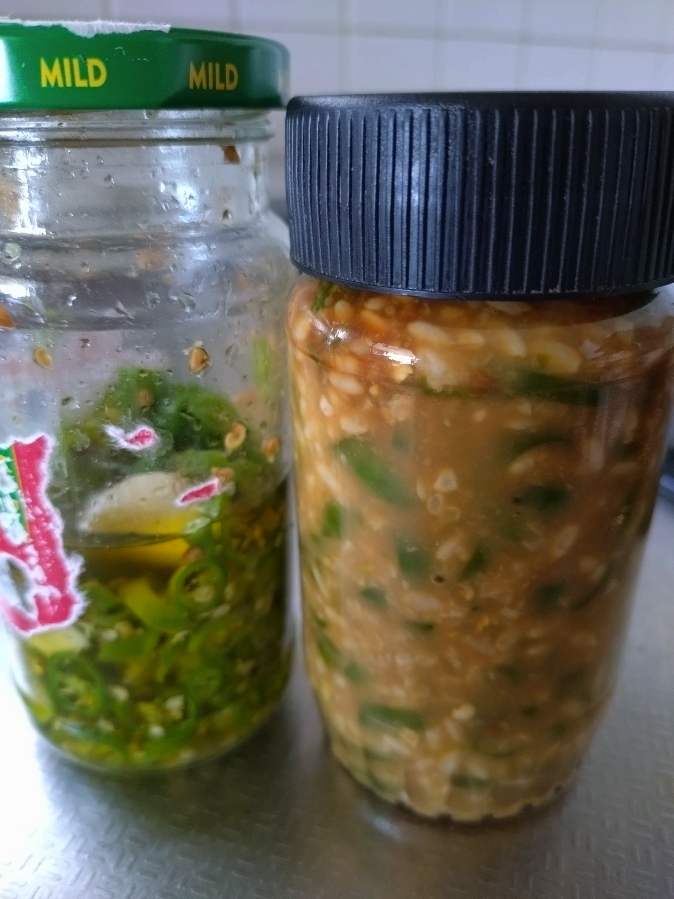 思ったより青南蛮がたくさんあったので、左のオイル漬けにして、右は3升漬にしました。