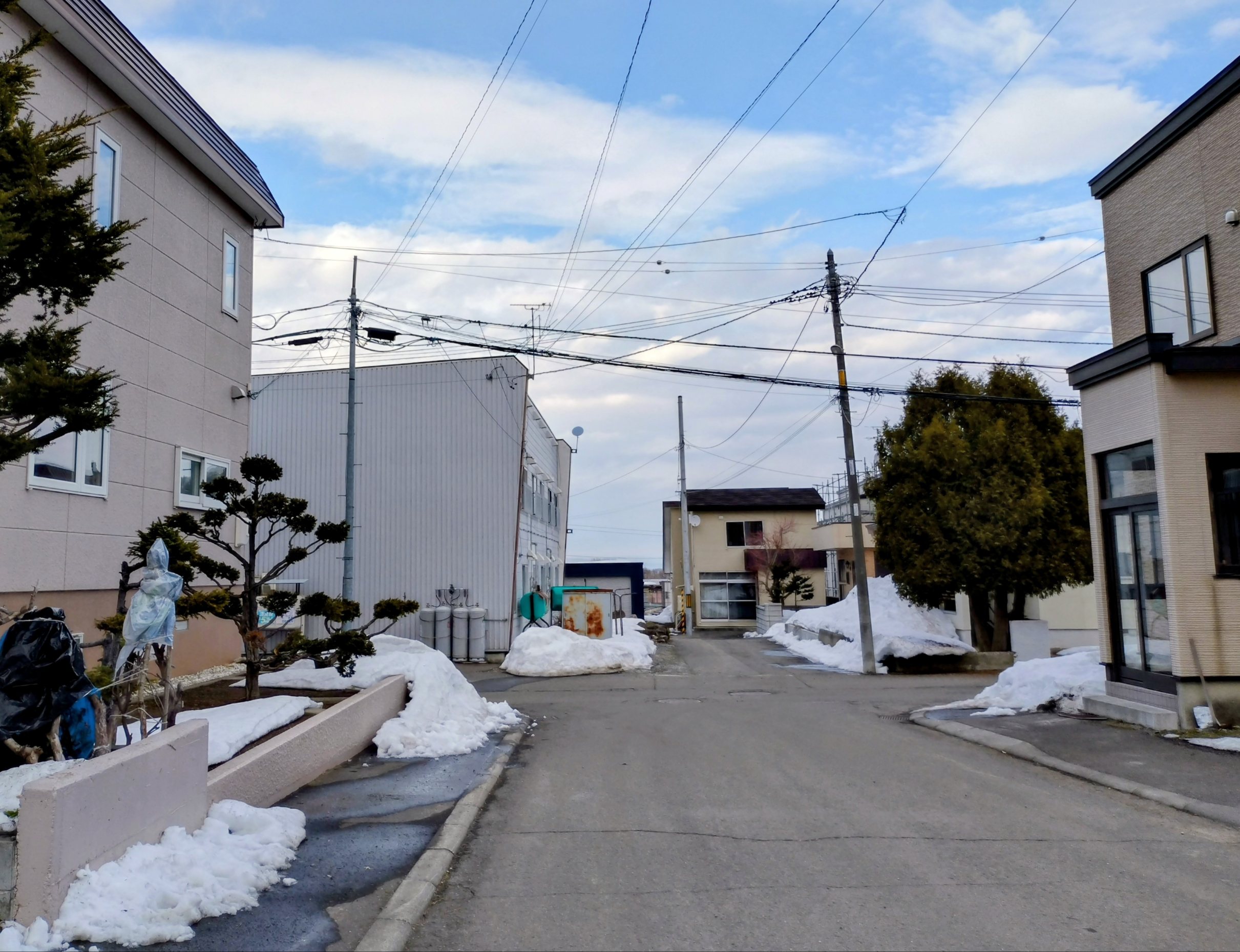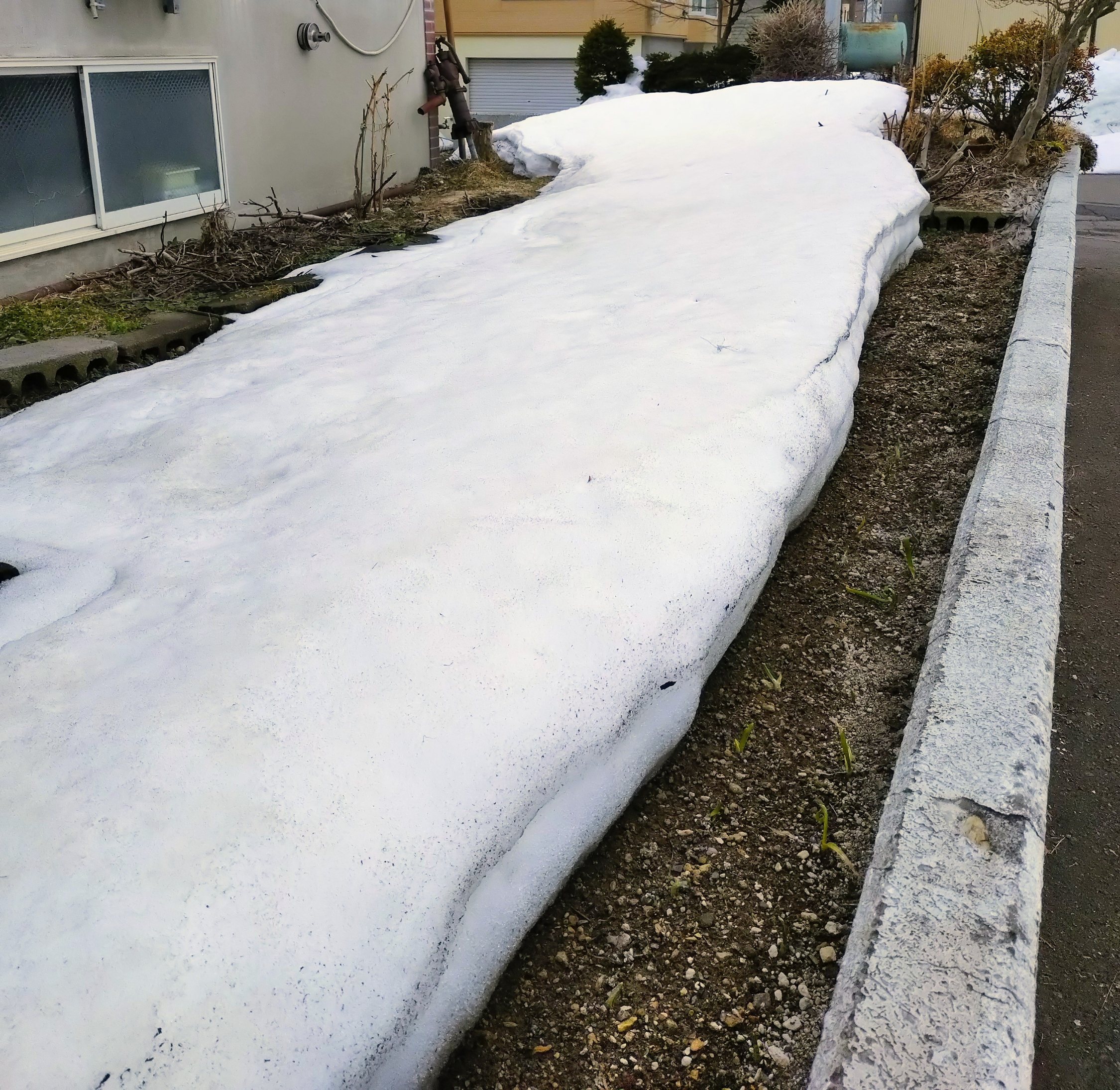 街中は全く雪がなくて、我が家の庭や近所はこんなです。
